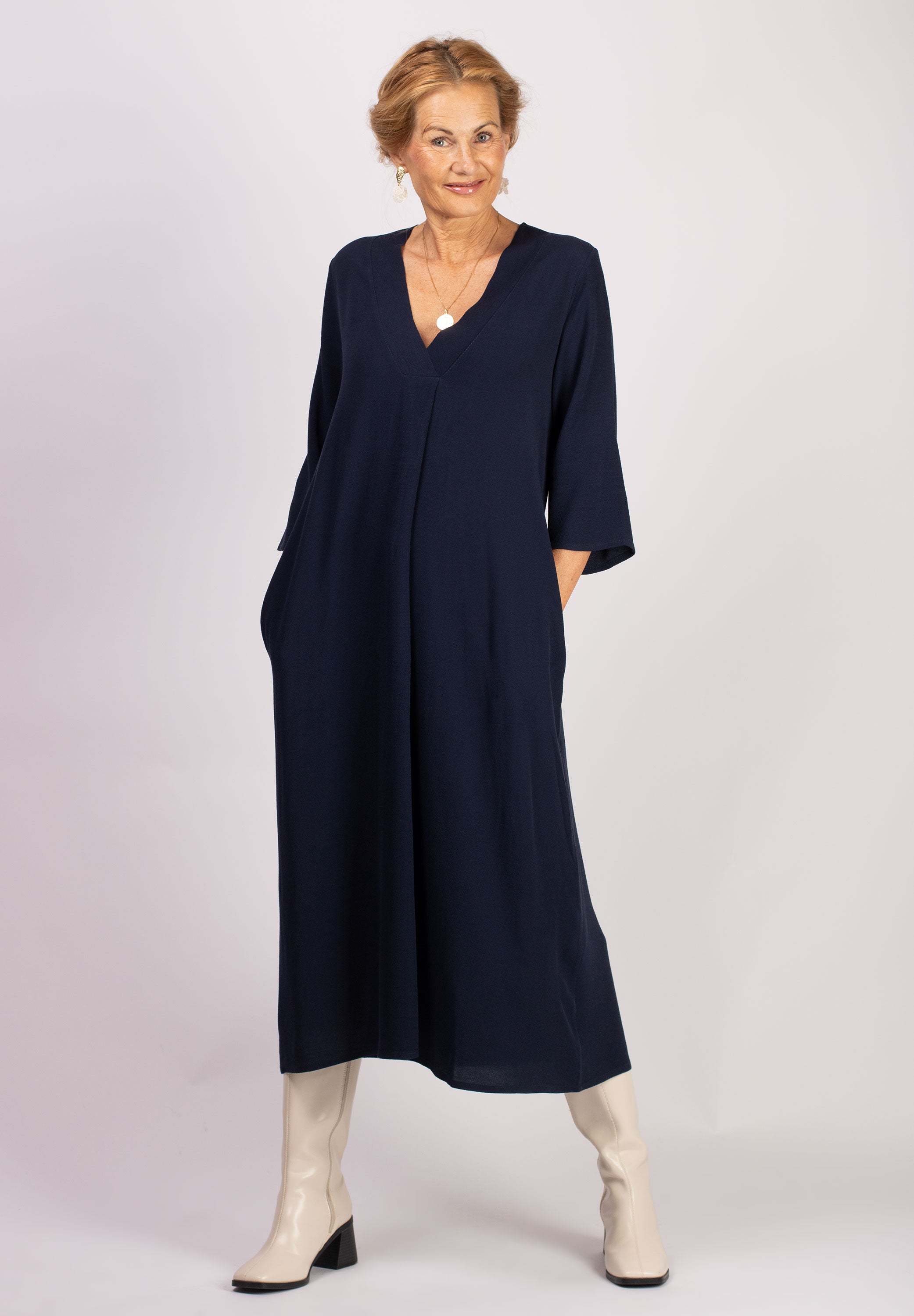A-LINJEFORMAD MIDIKLÄNNING I CREPPAD VISKOS