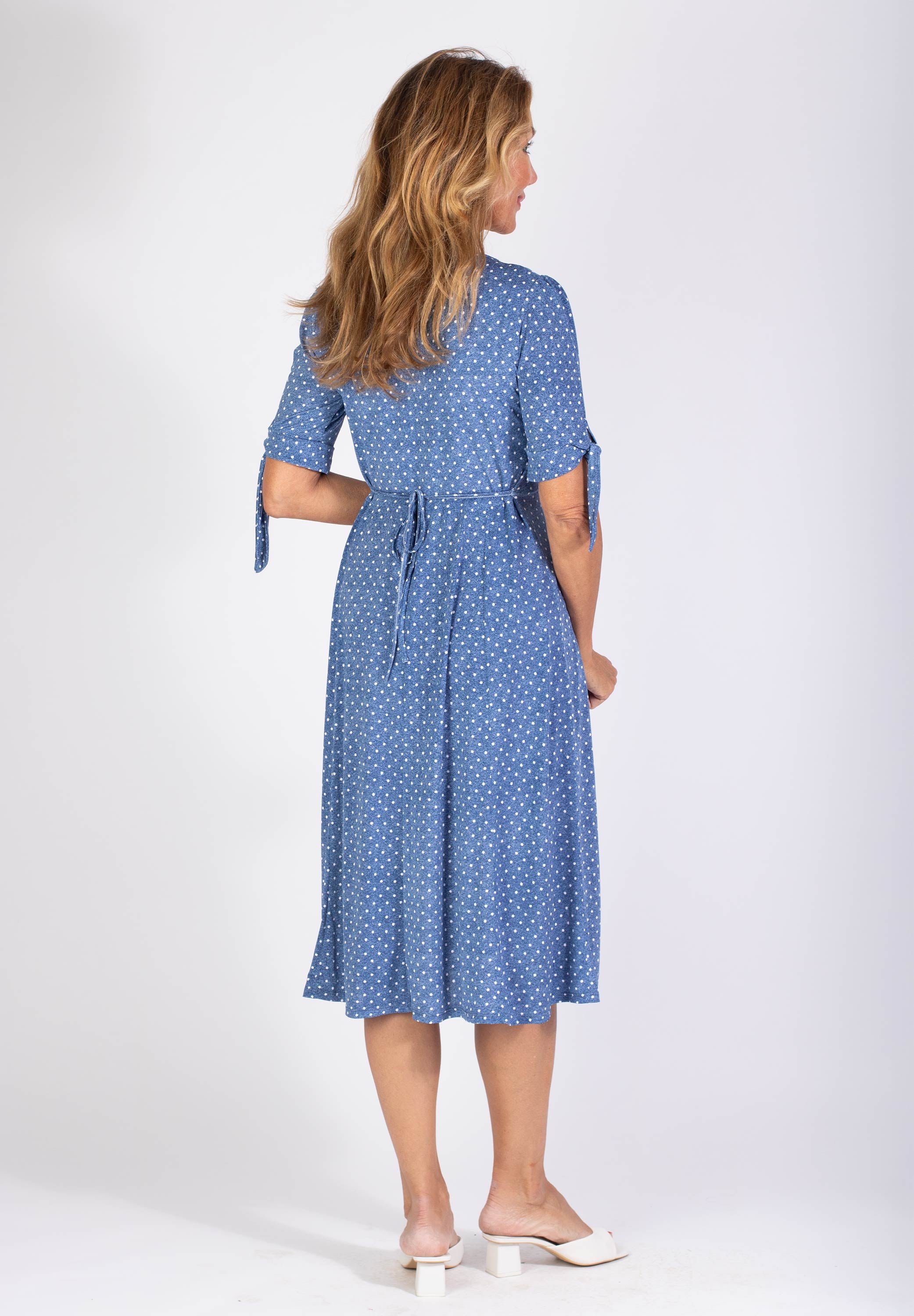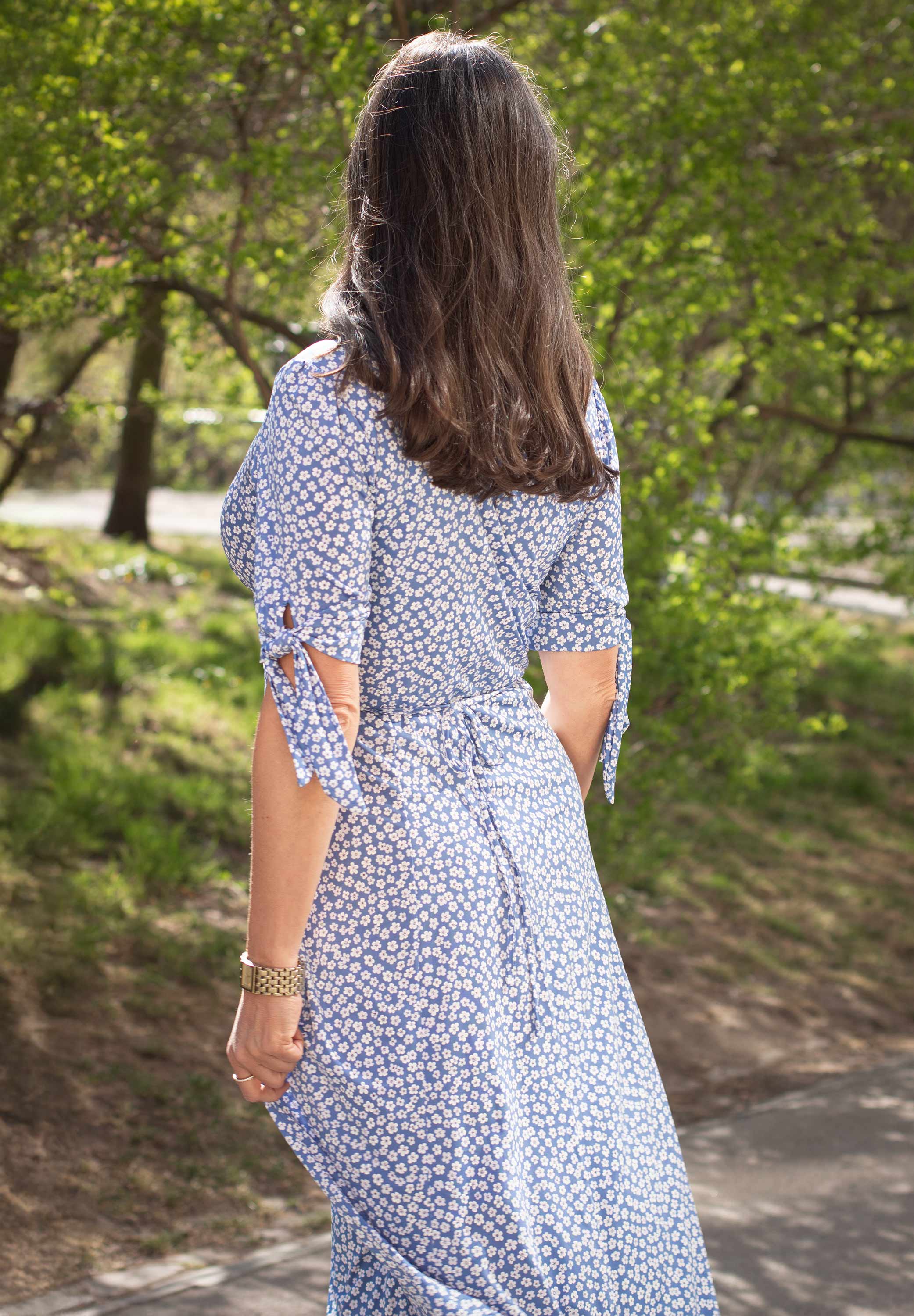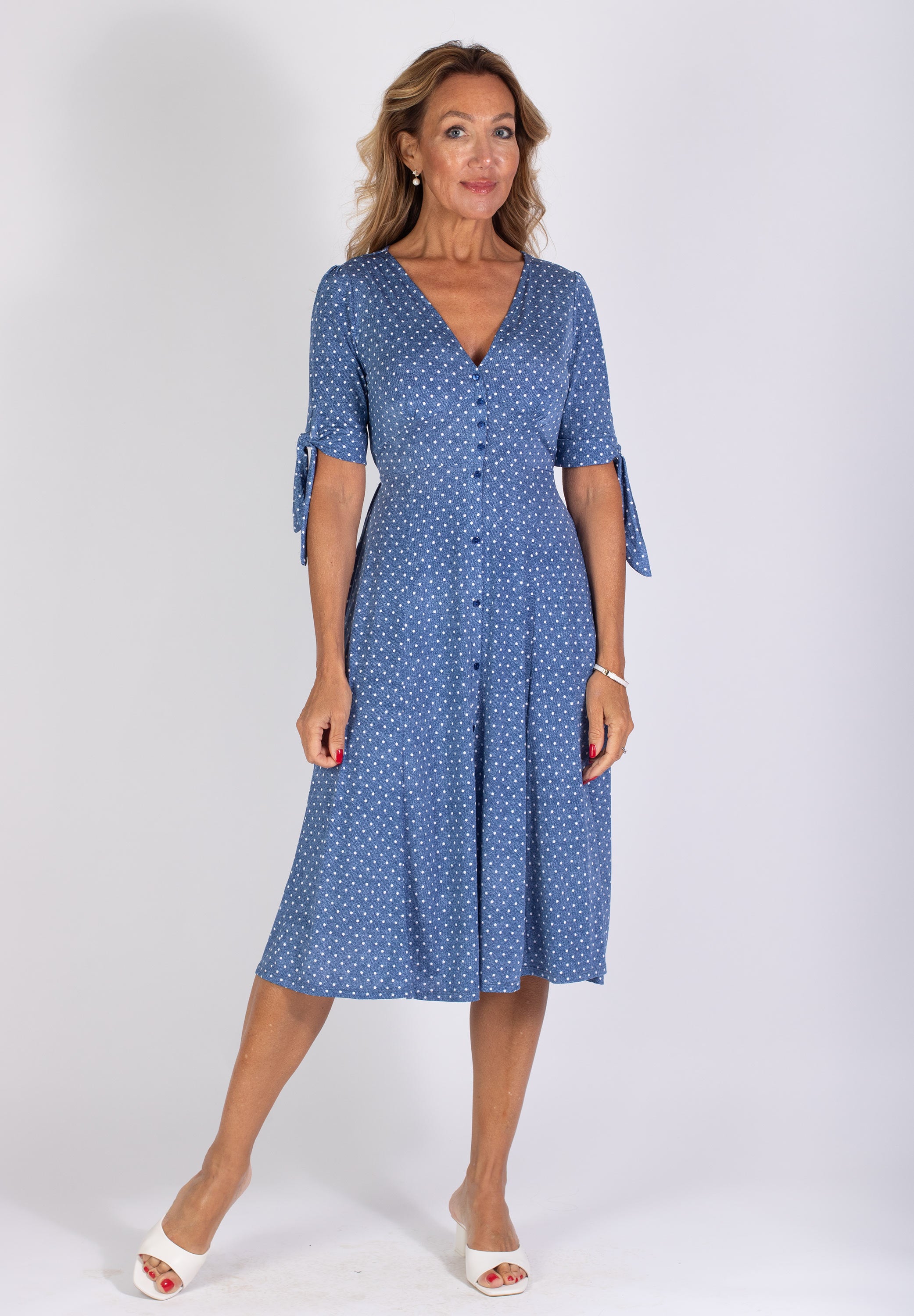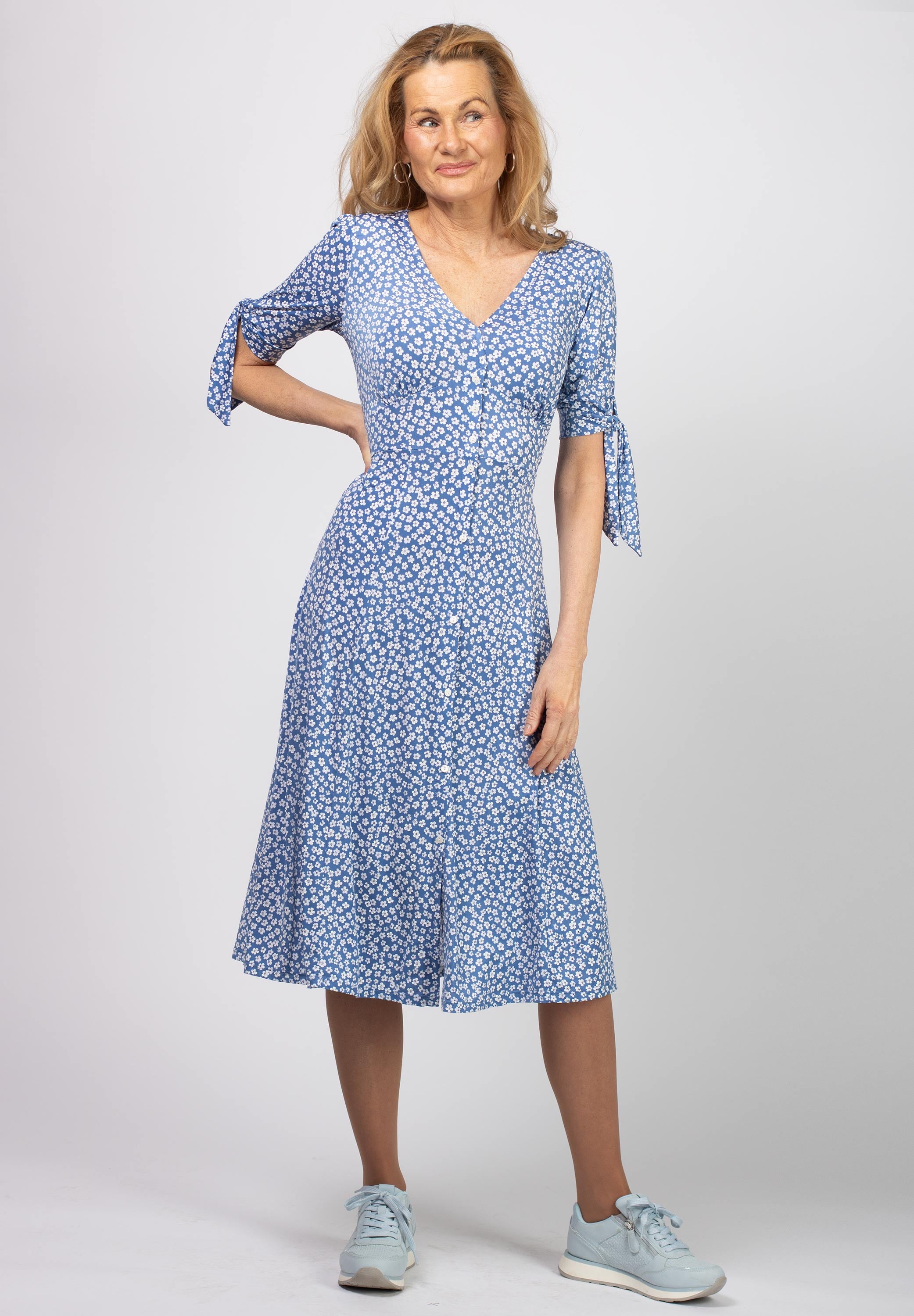 MÖNSTRAD KLÄNNING MED SKÄRP