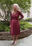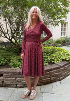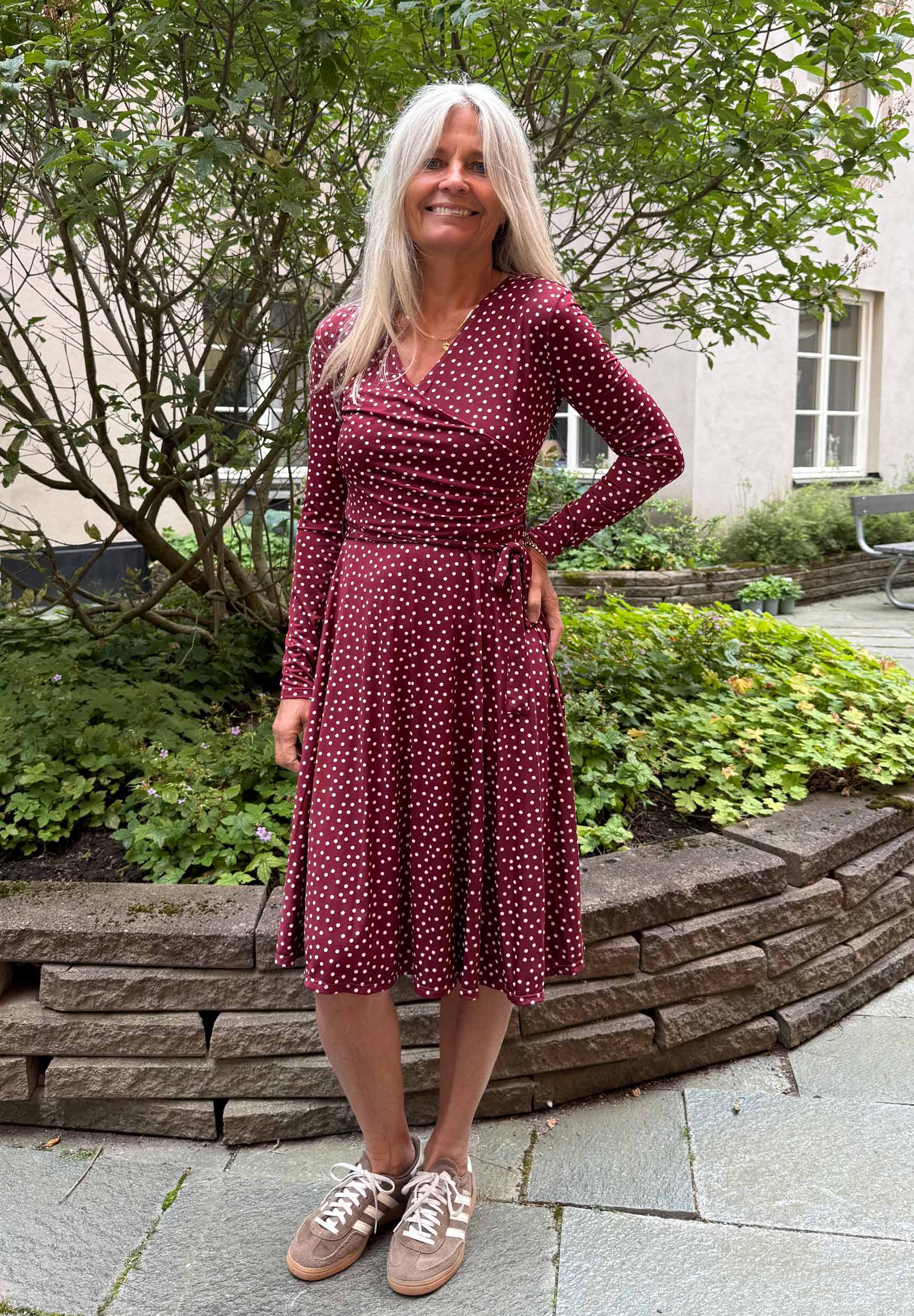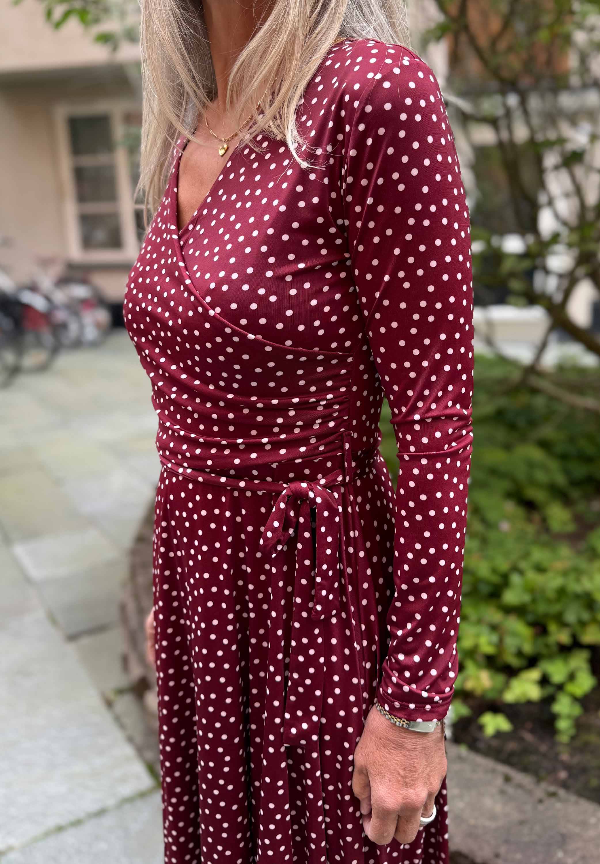 Vinröd midiklänning med vita prickar