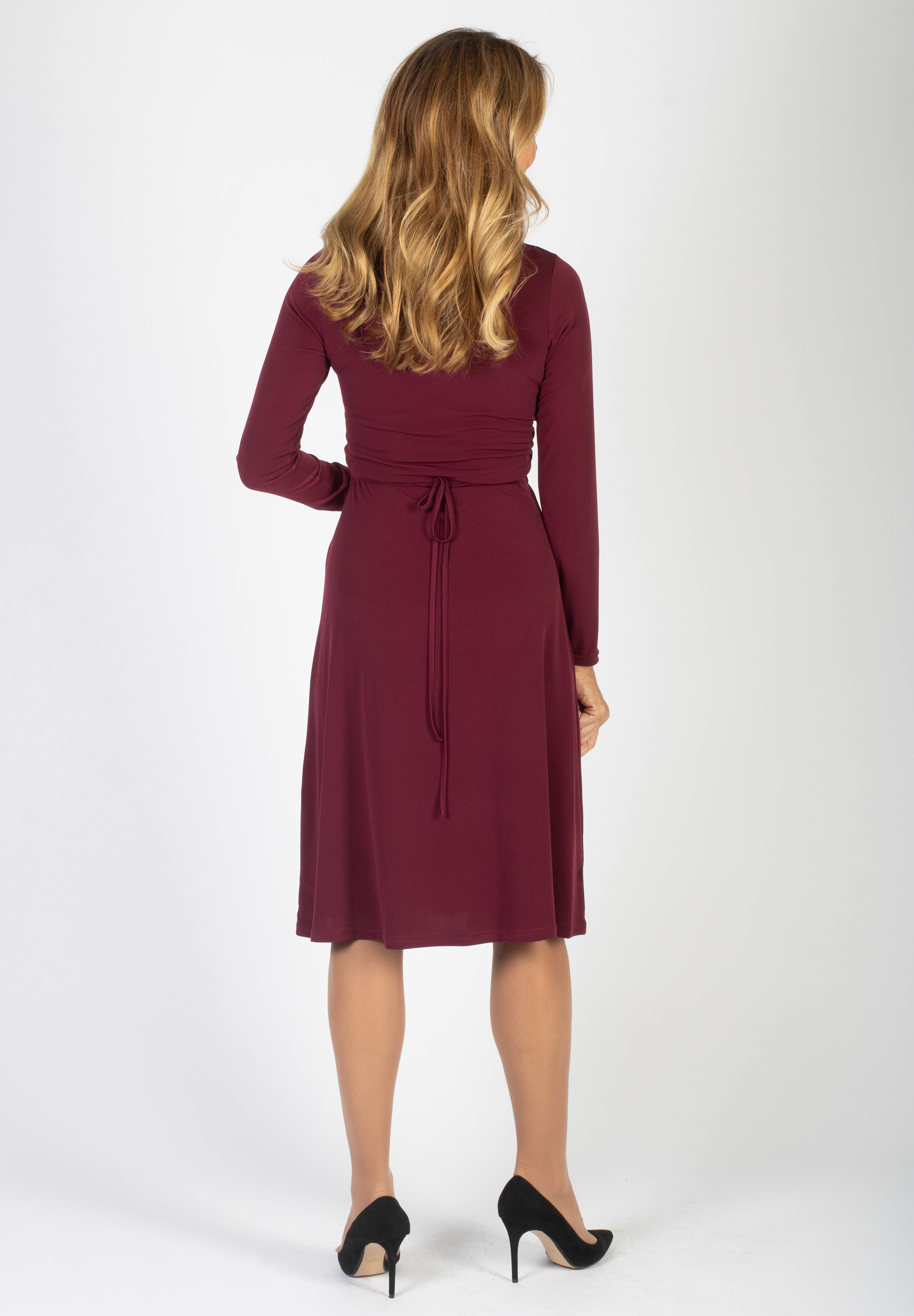 Plommonfärgad midi-klänning med krage