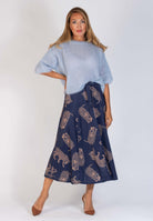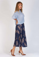 Mörkblå midikjol med leopardmönster