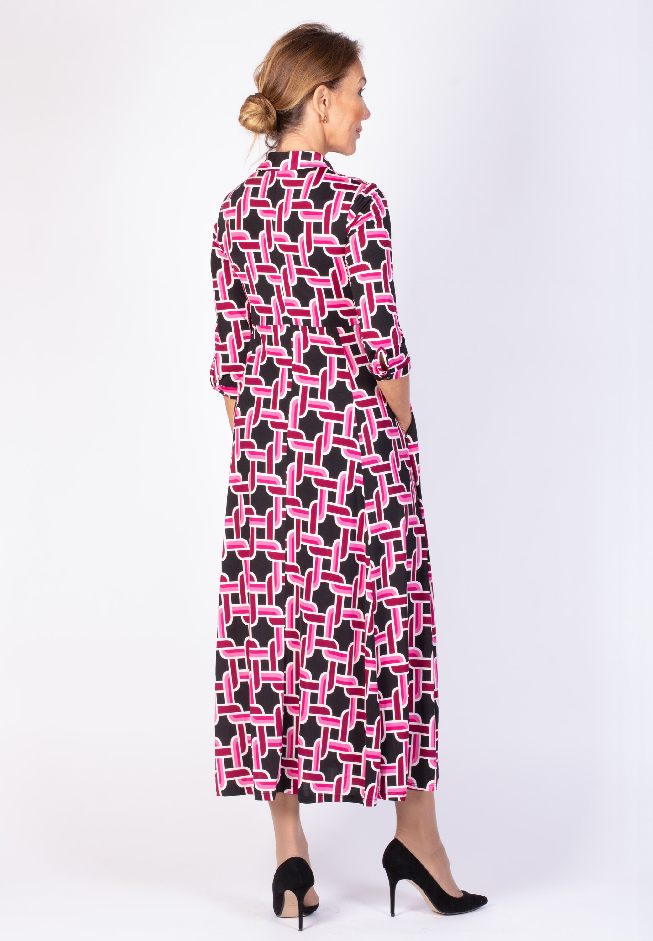 Lång skjortklänning med dold knäppning.