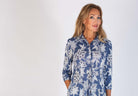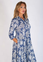 Mörkblå skjortklänning med vitt paisley-mönster