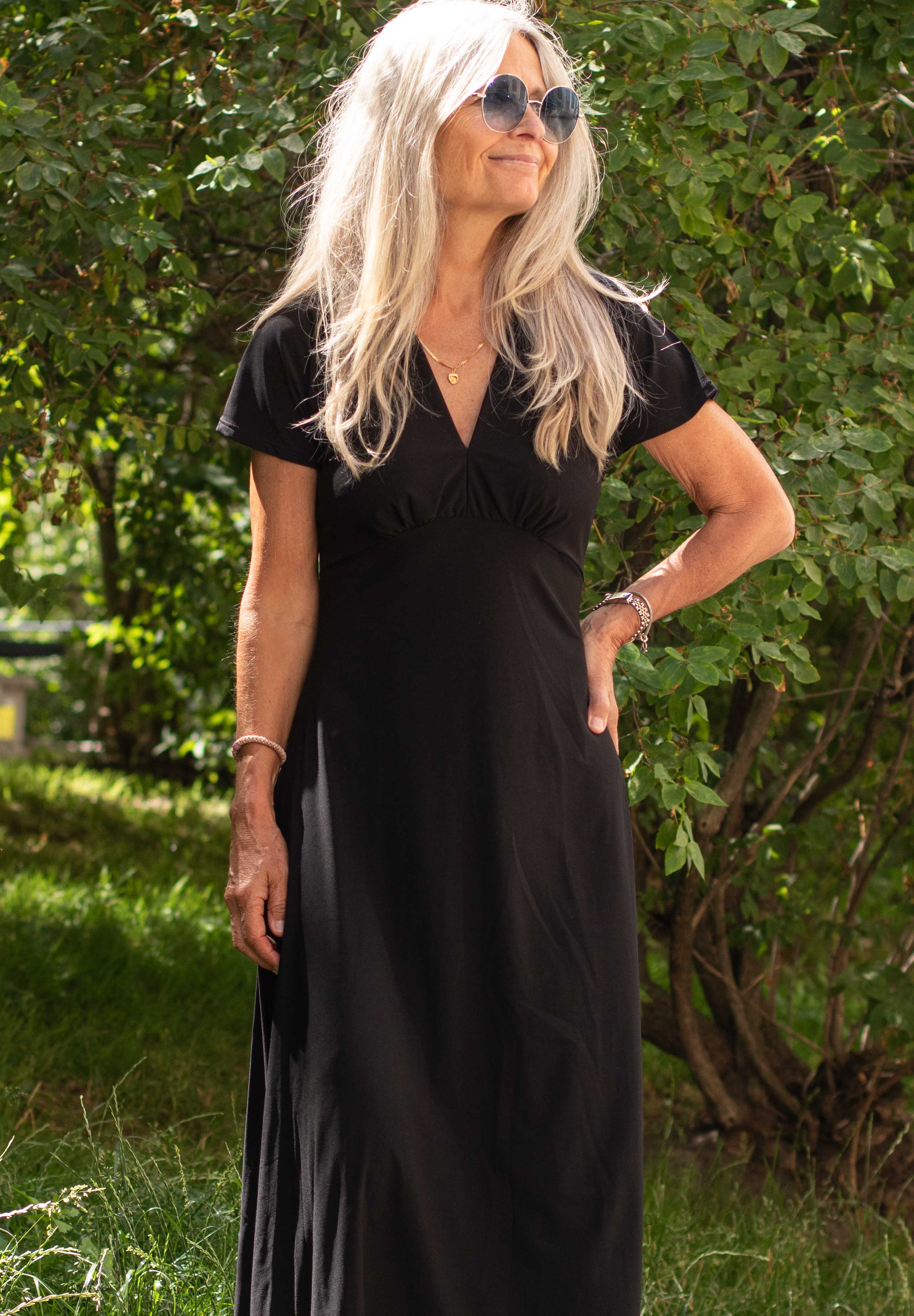 Enfärgad svart midiklänning