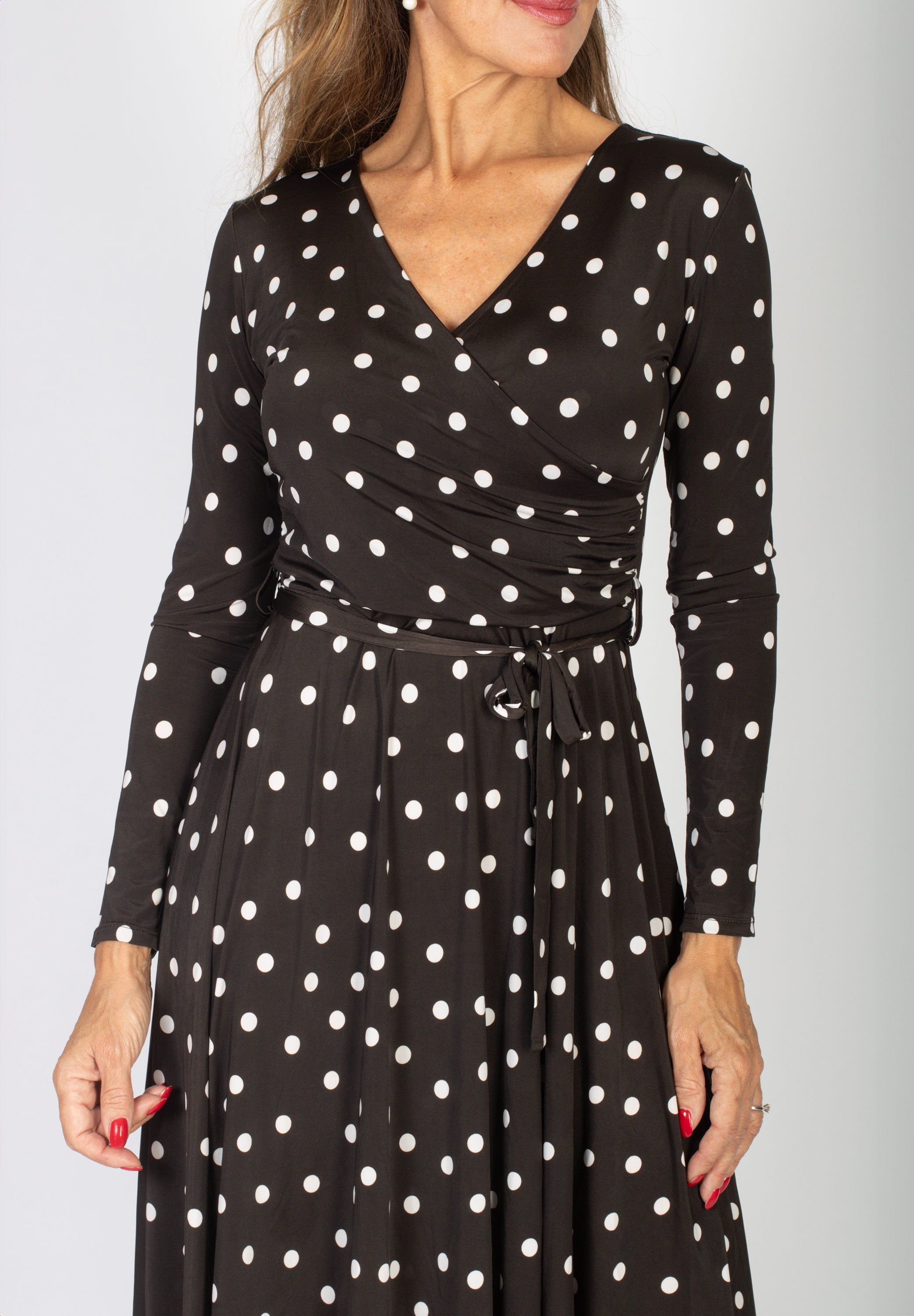 Mörkbrun prickig midi-klänning