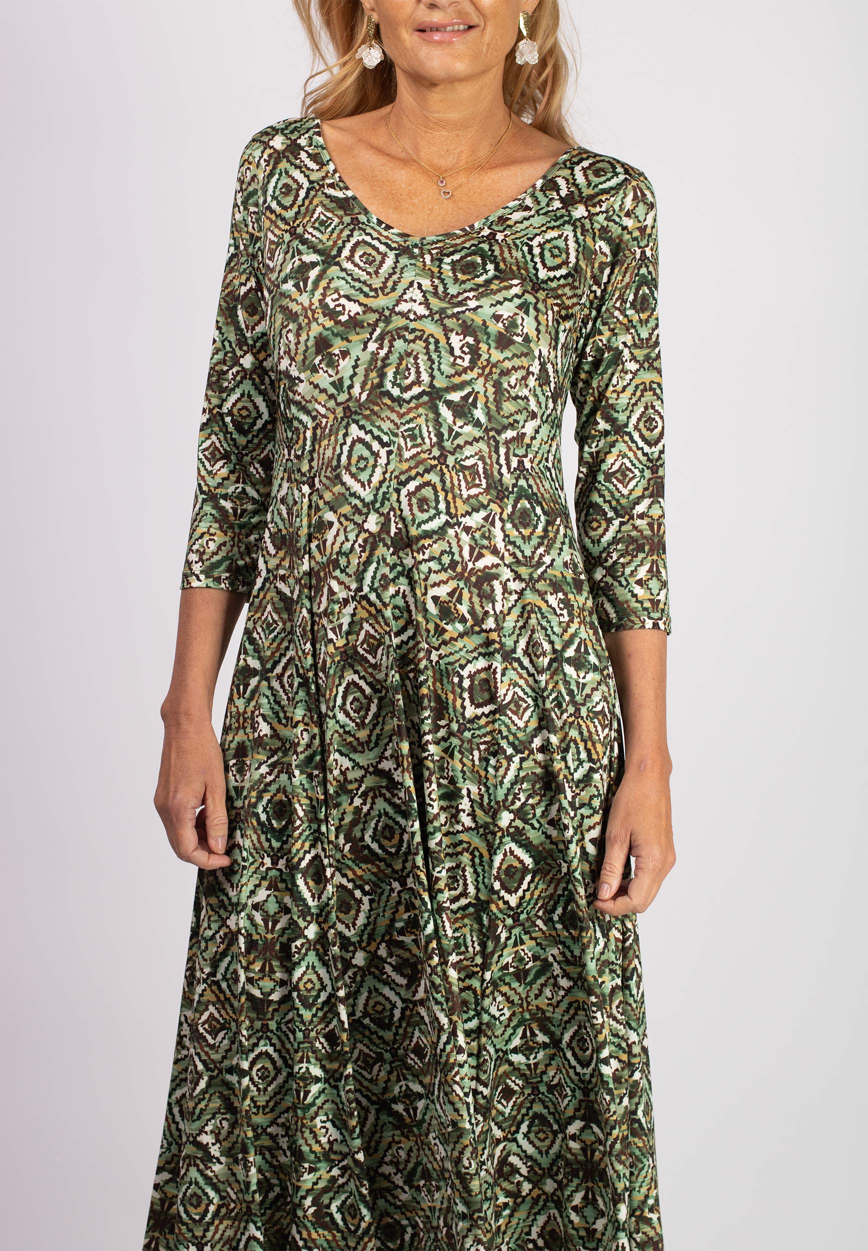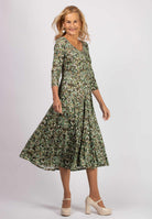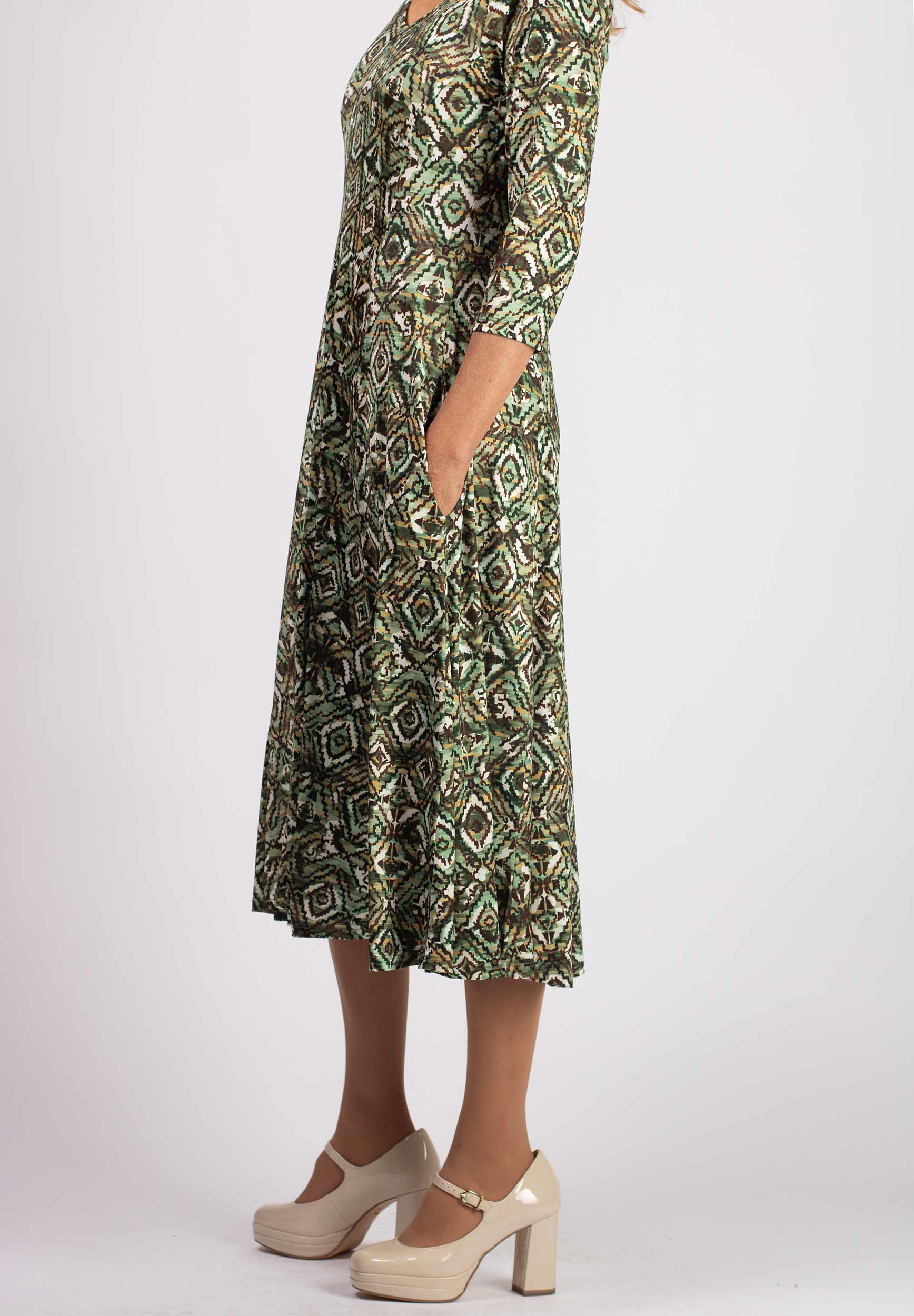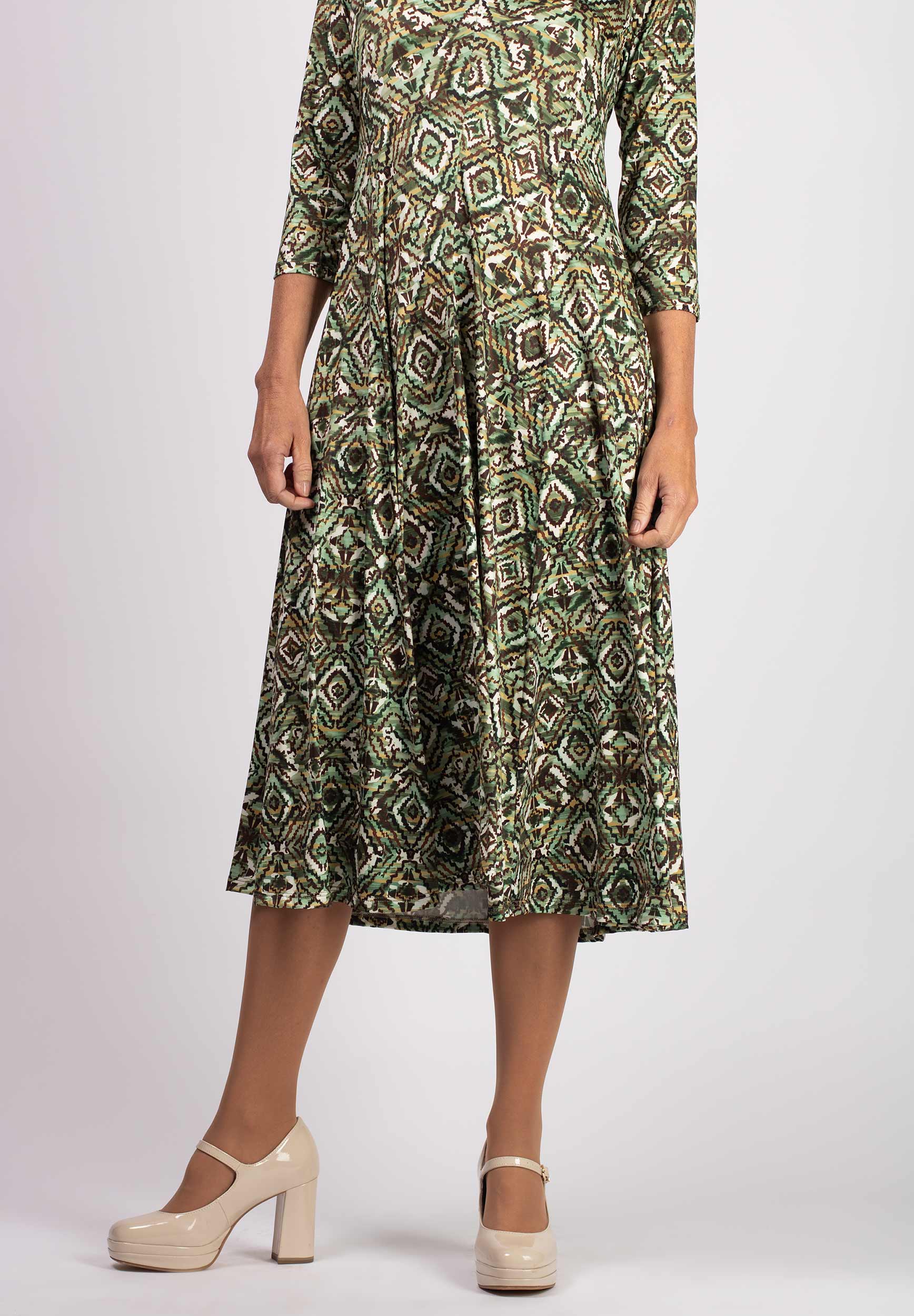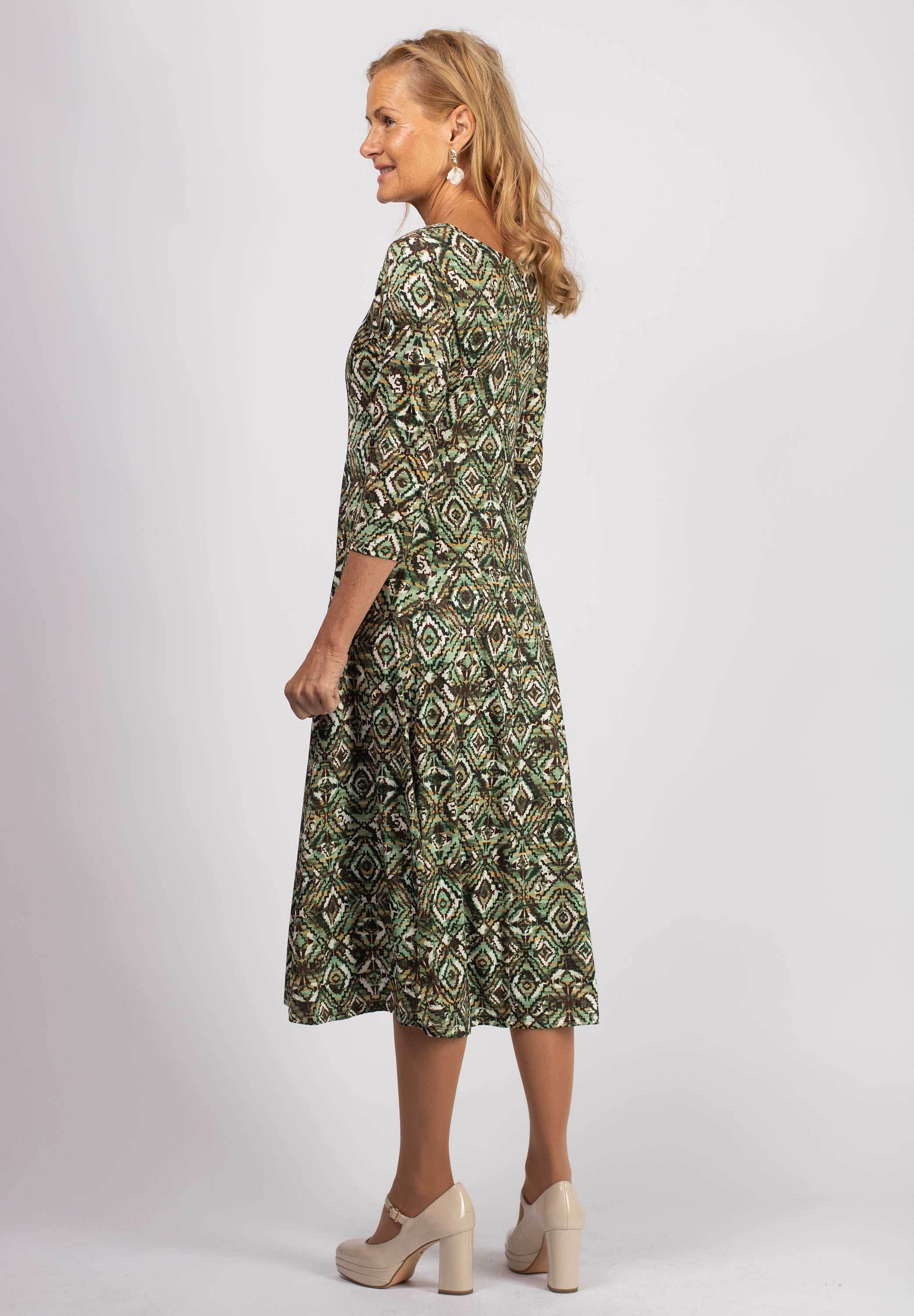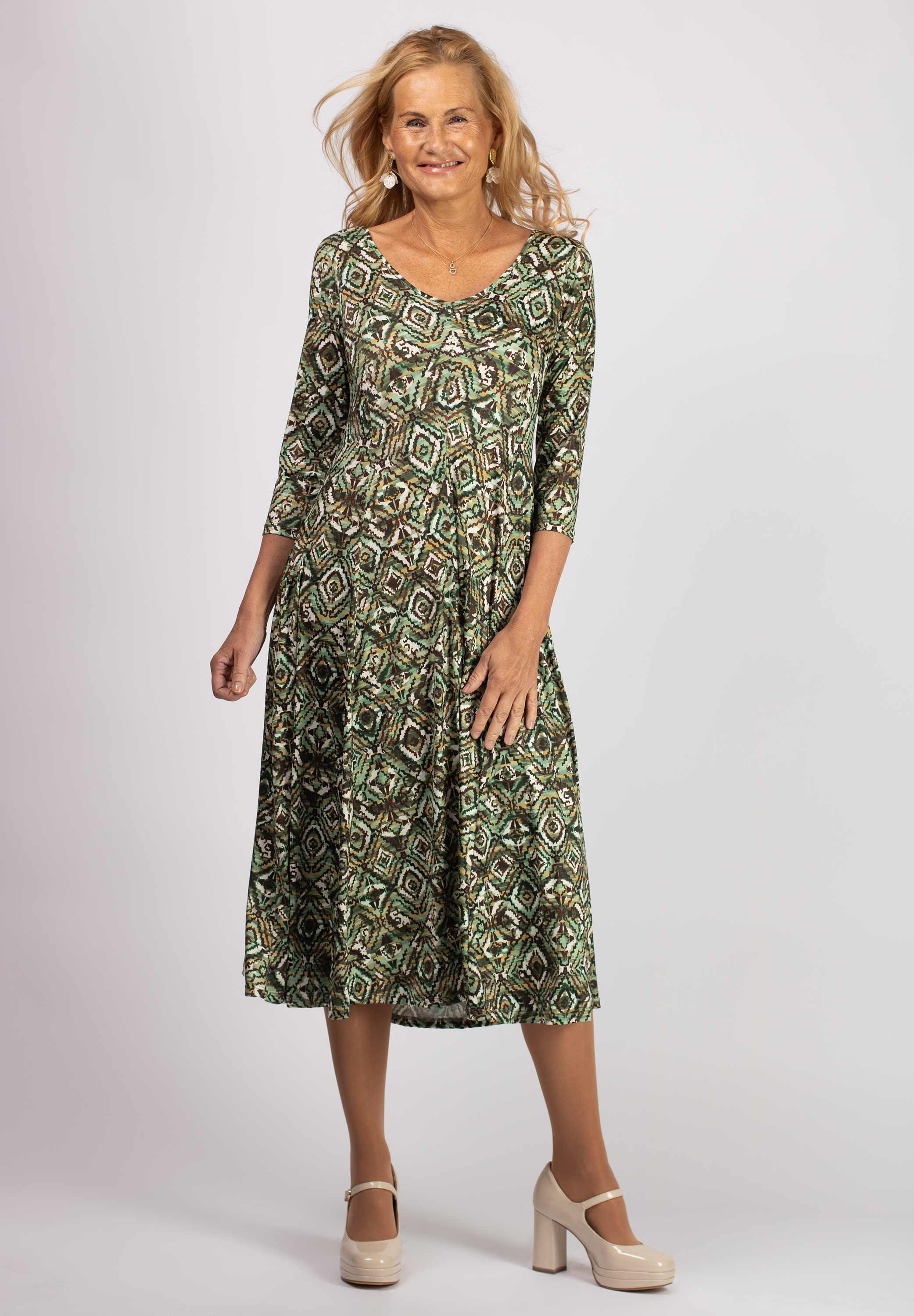 Grön-mönstrad midi-klänning