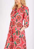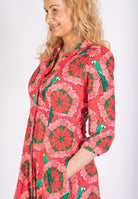 Rosa skjortklänning med gröna papegojor