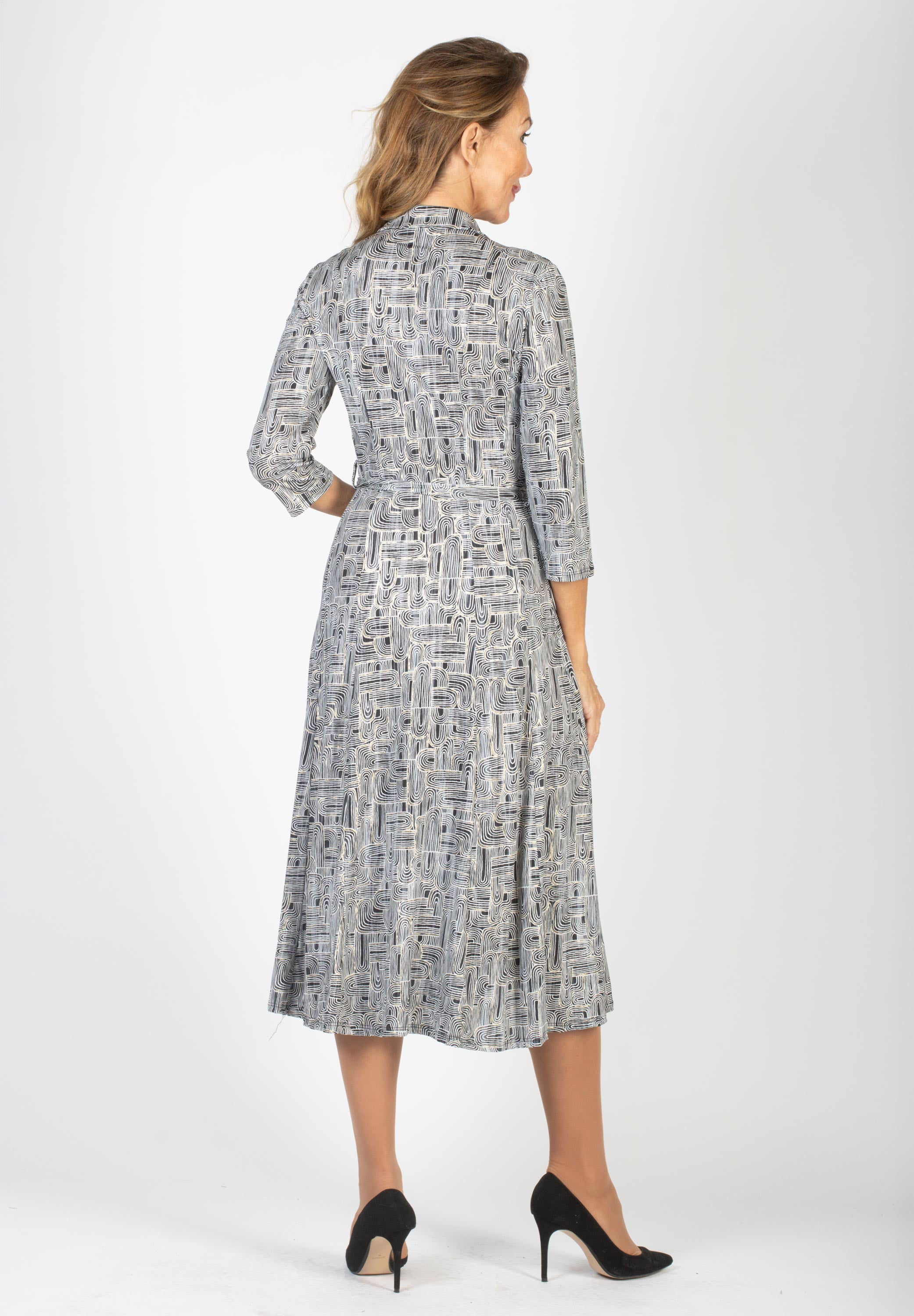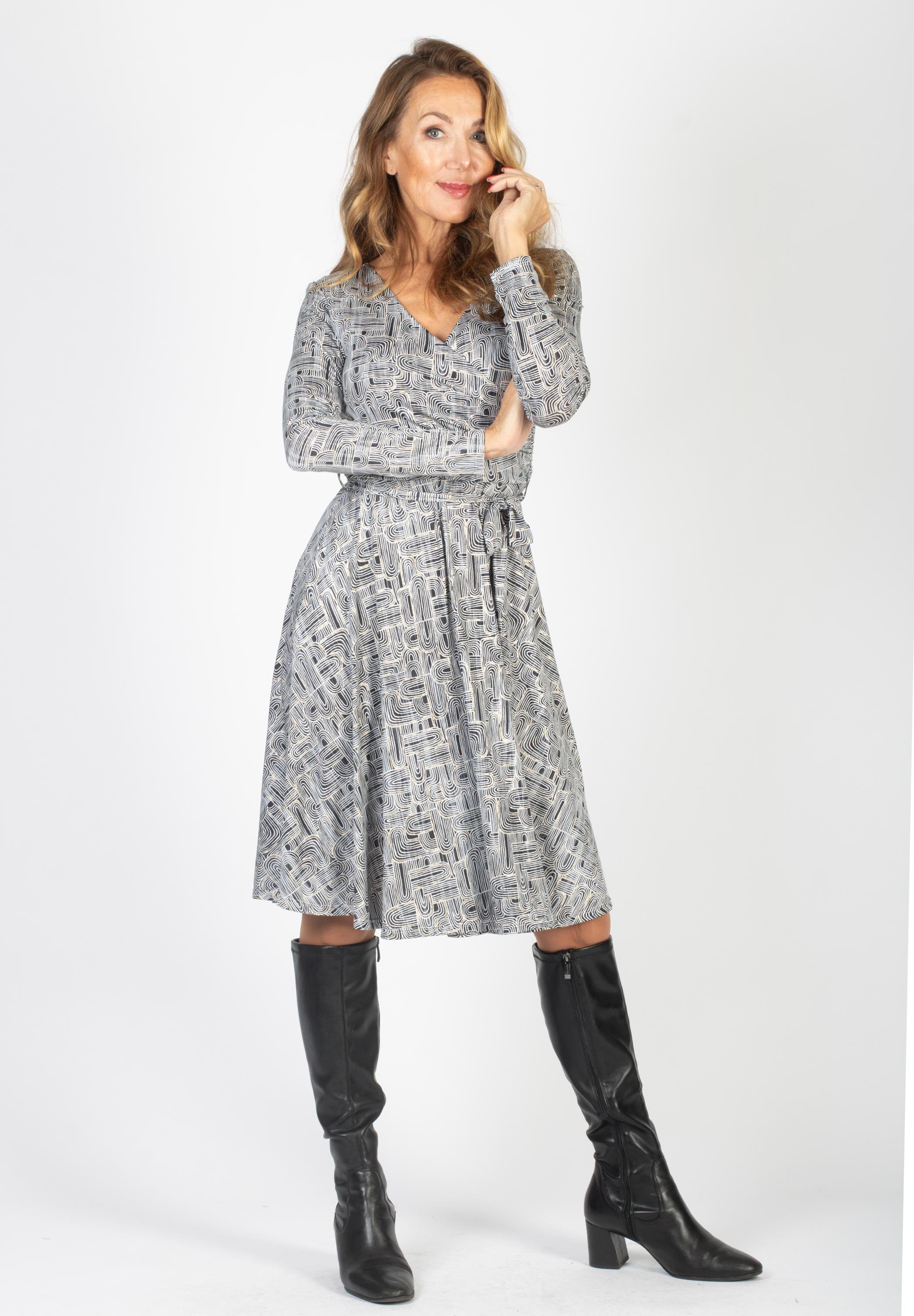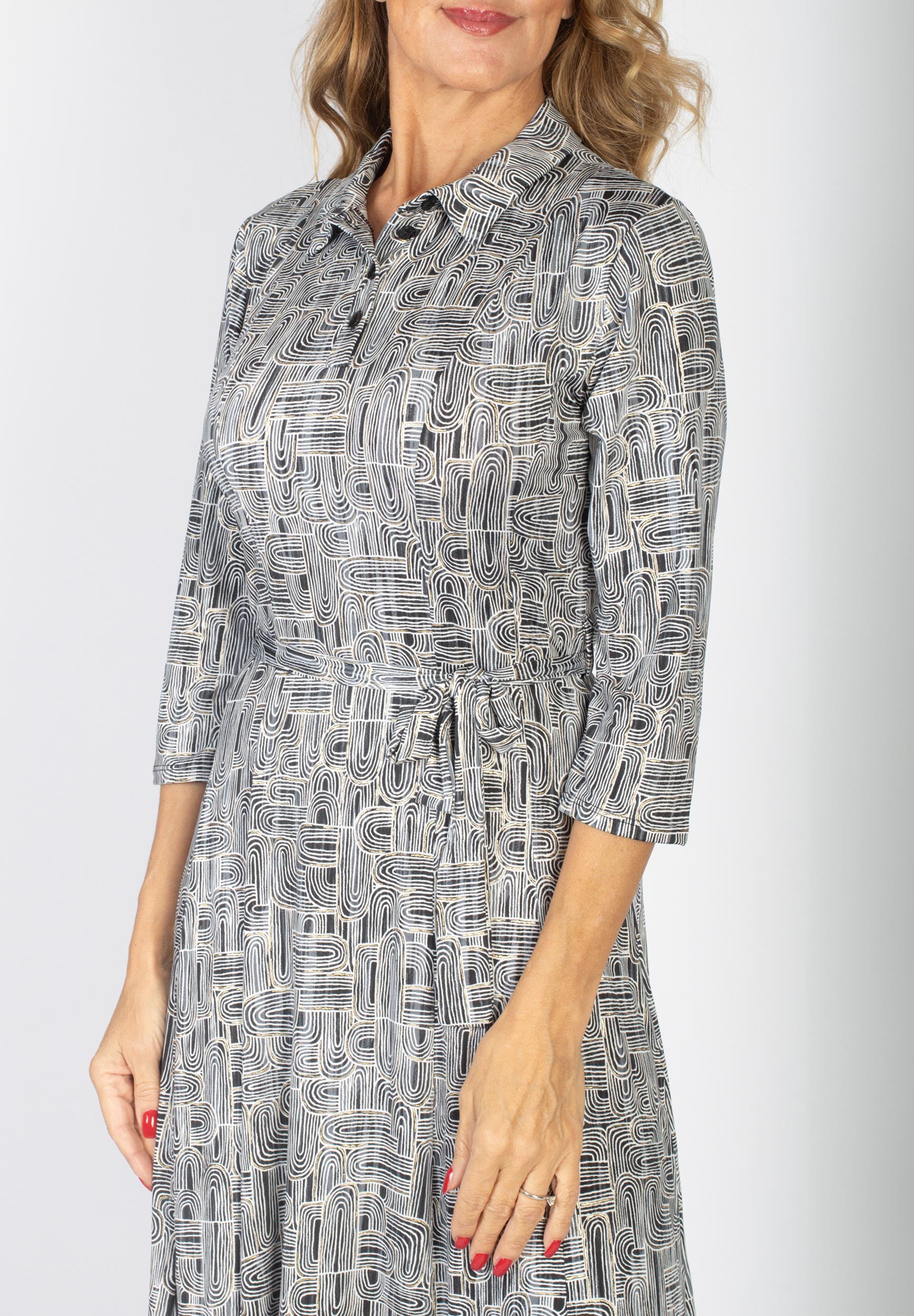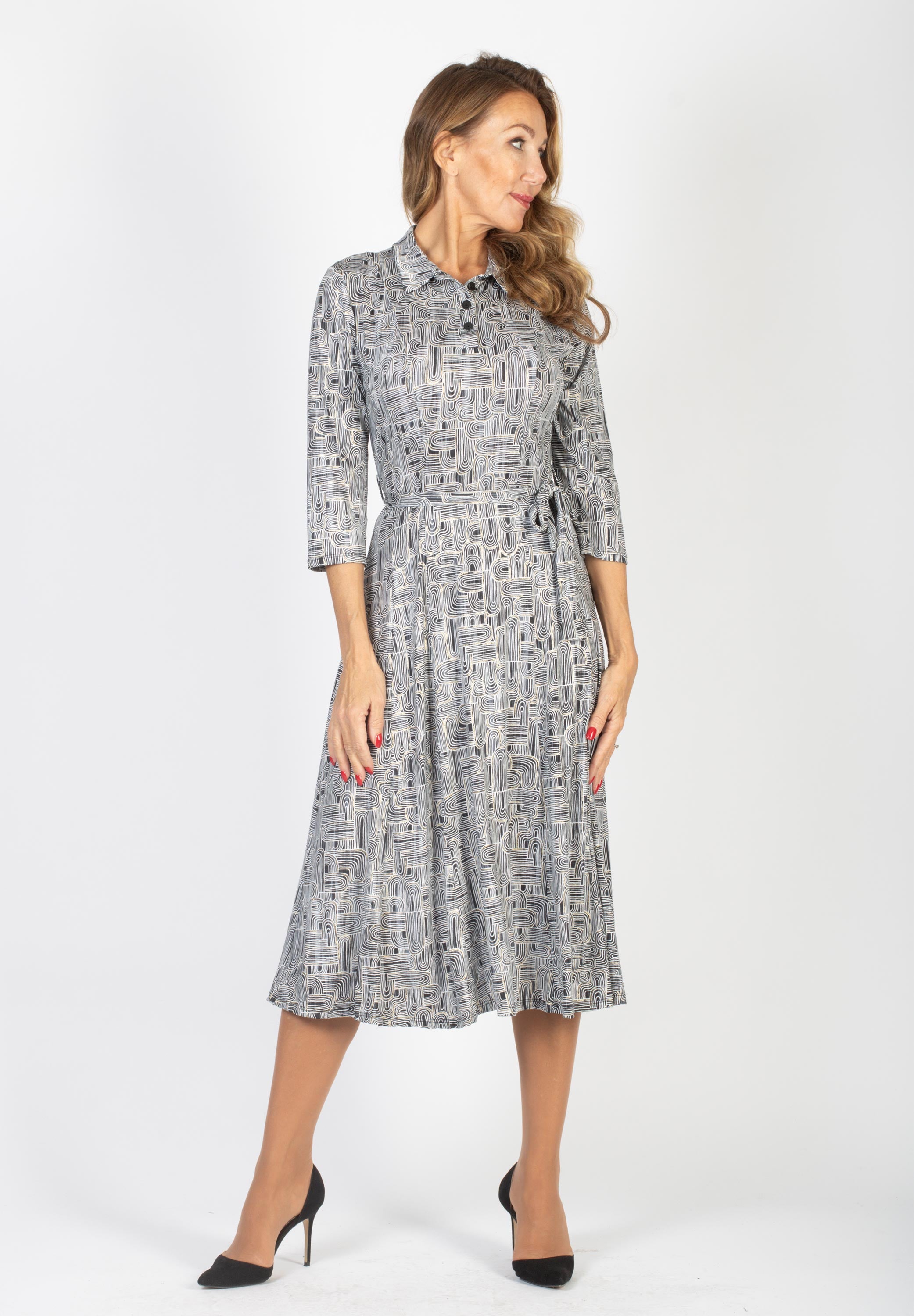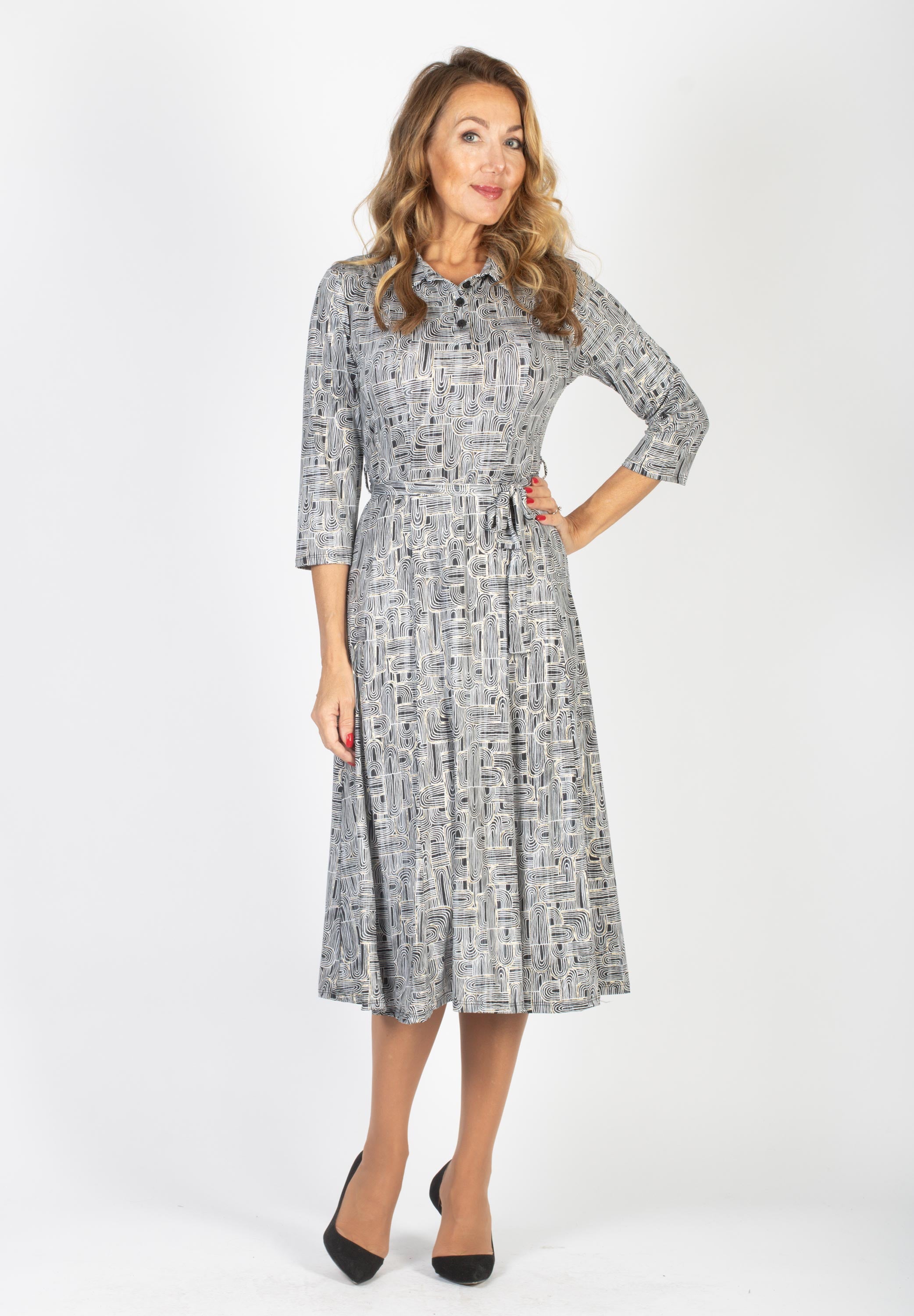 MÖNSTRAD KLÄNNING MED KNYT