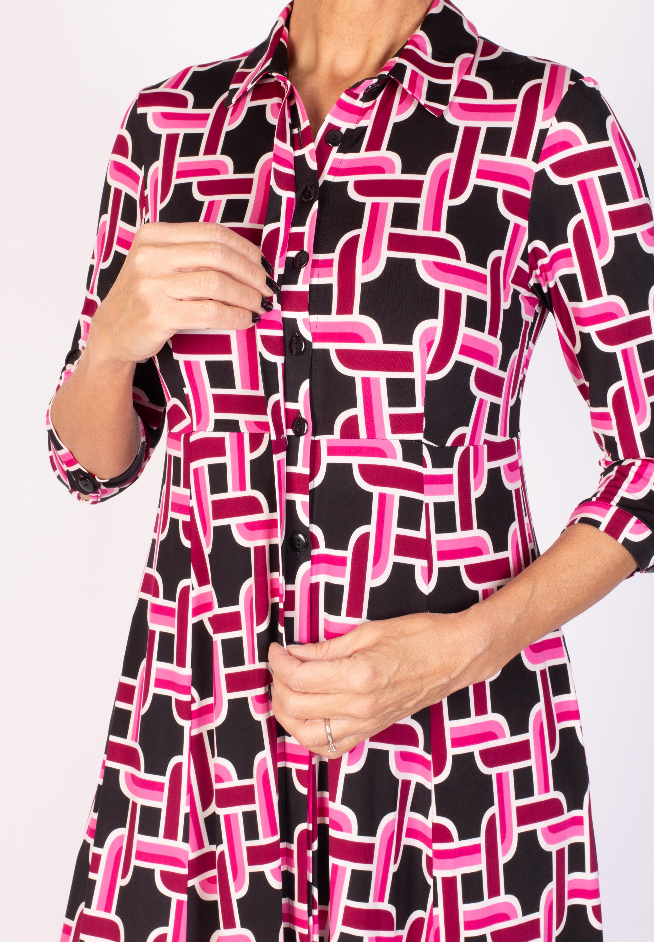 Lång skjortklänning med dold knäppning.
