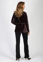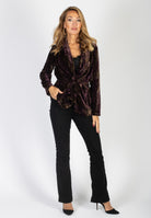 Lyft din stil med denna sofistikerade kavaj i mjuk och skimrande sammet. Den klassiska designen med kavajslag, långa ärmar och en enkel knapp framtill kombineras med ett skärp i midjan för en smickrande siluett.