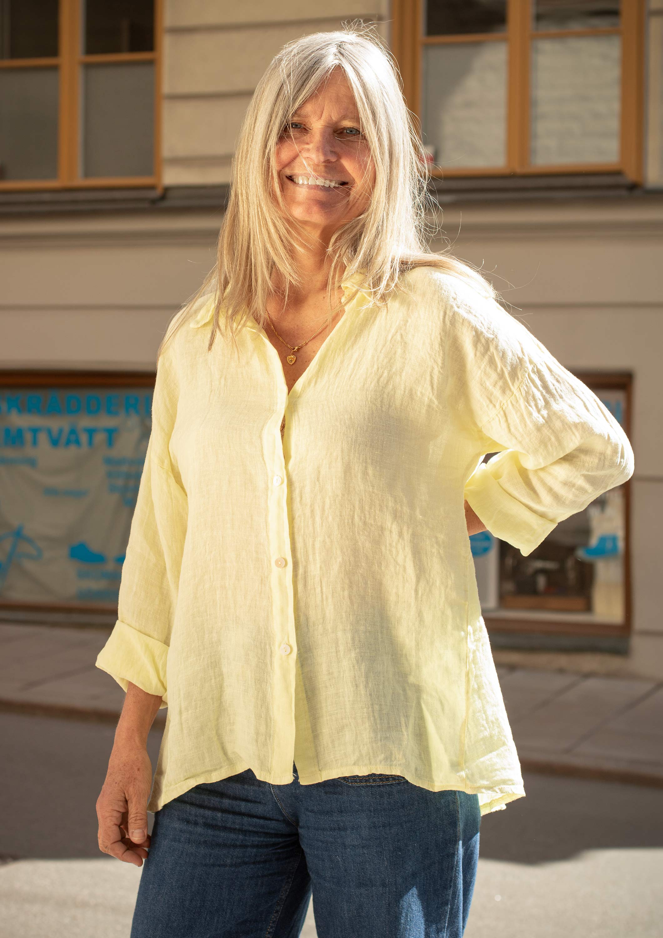 En klassisk skjorta i 100% linne – sval och enkel att styla. Den har en rak passform med krage, knappar framtill och långa ärmar som enkelt kan rullas upp för en mer avslappnad look.