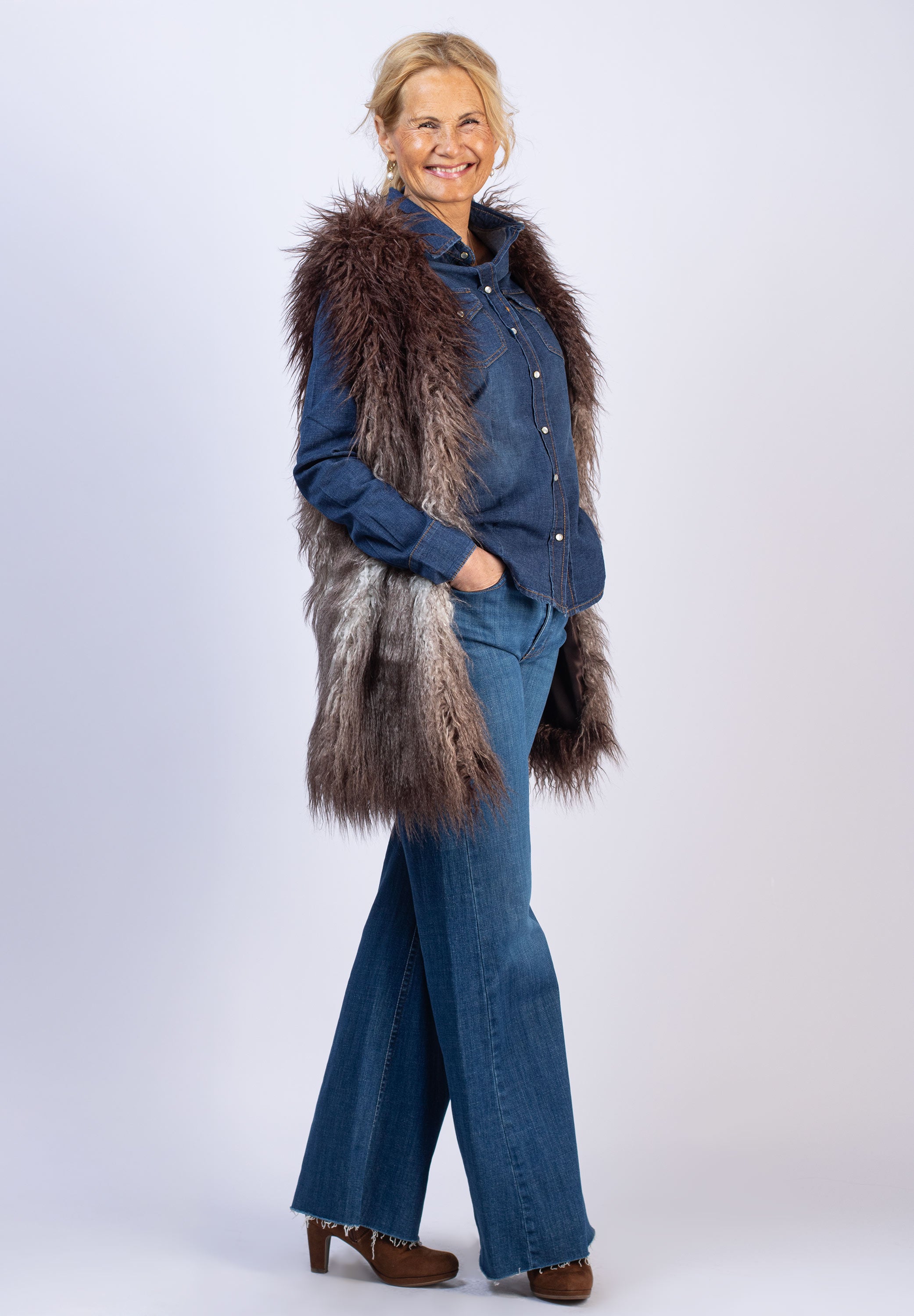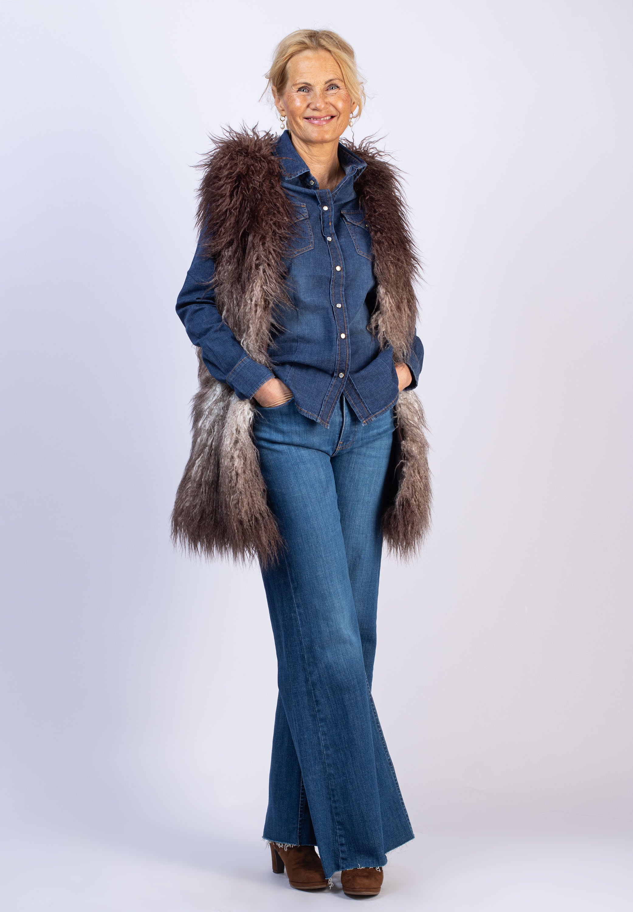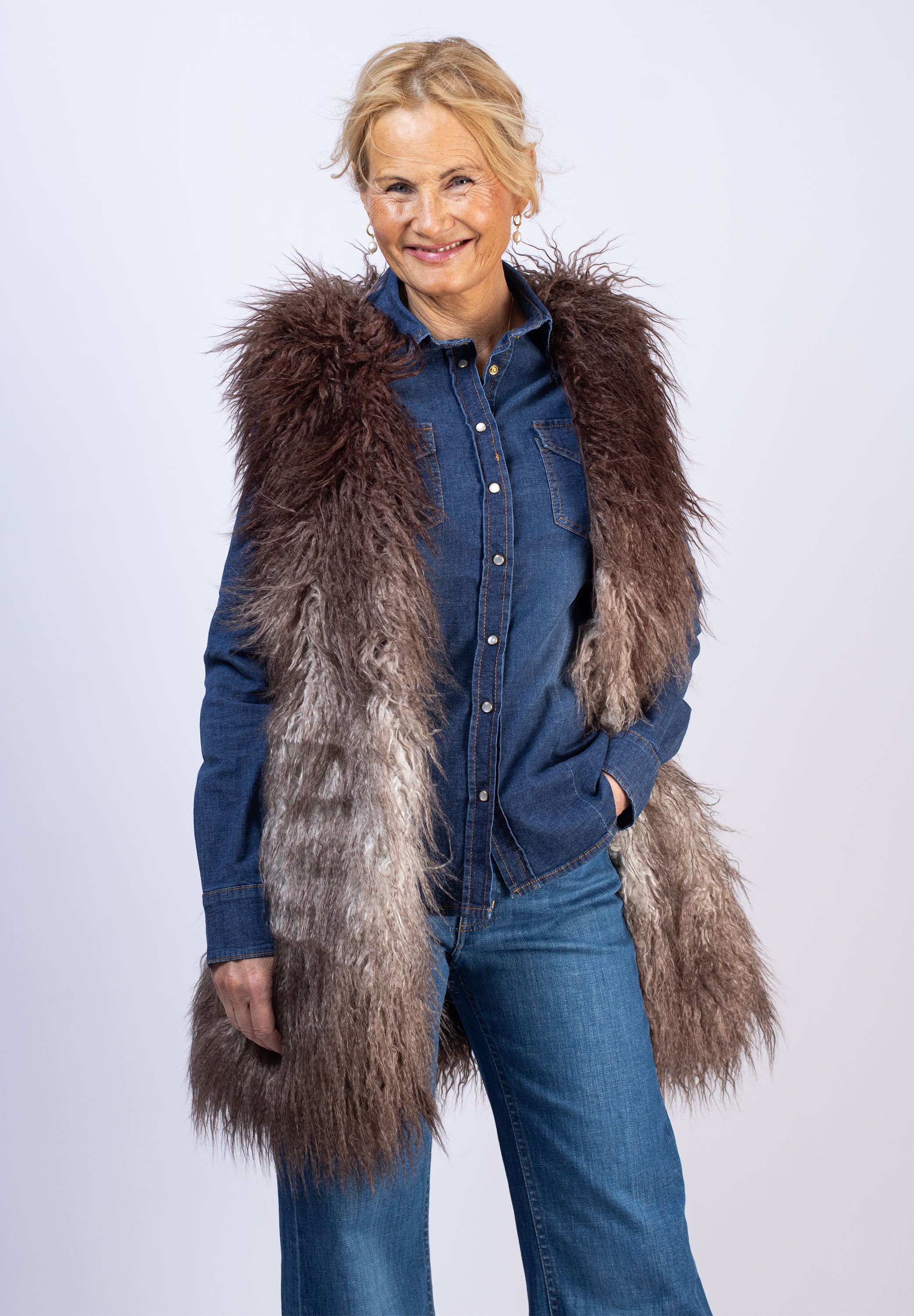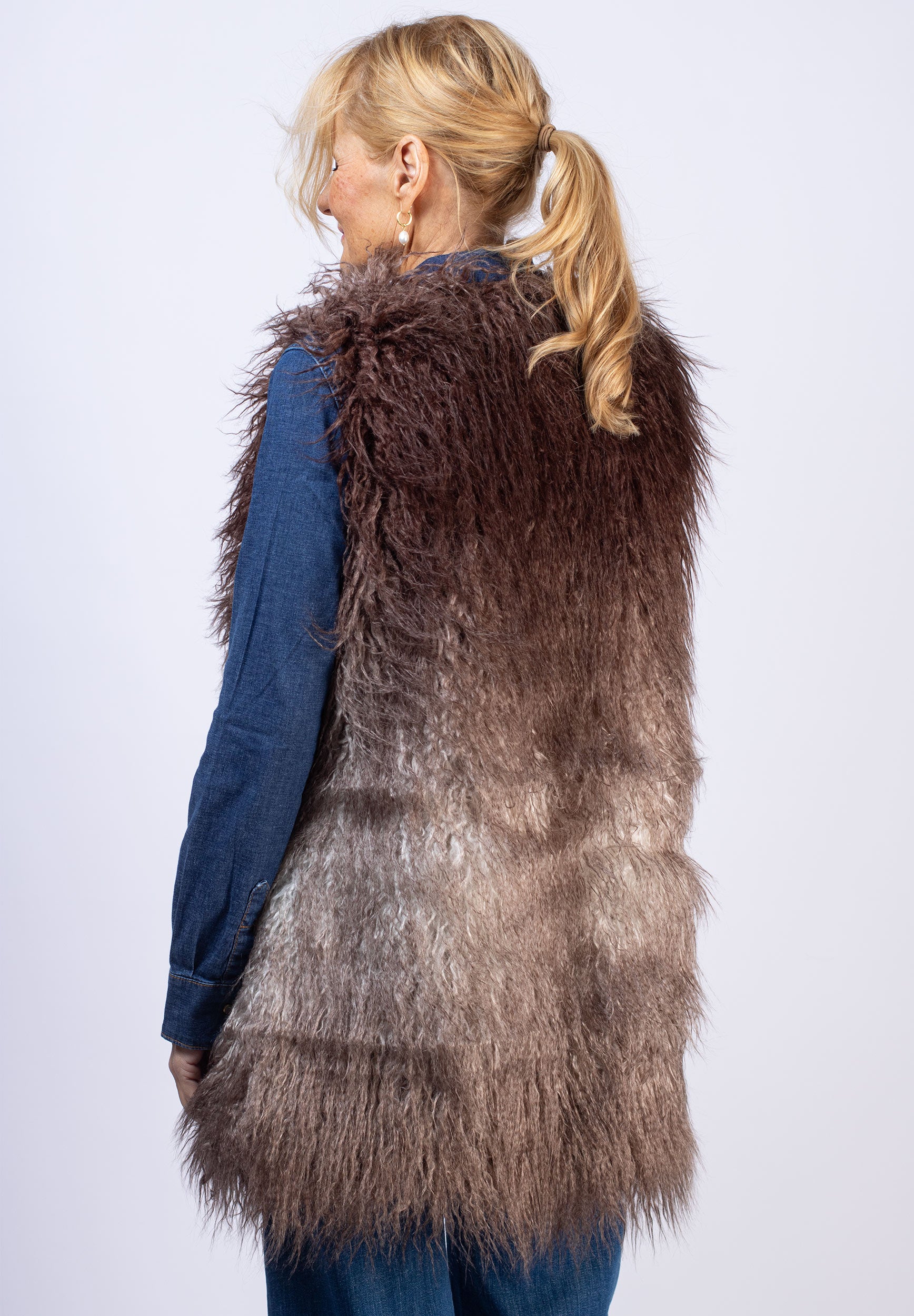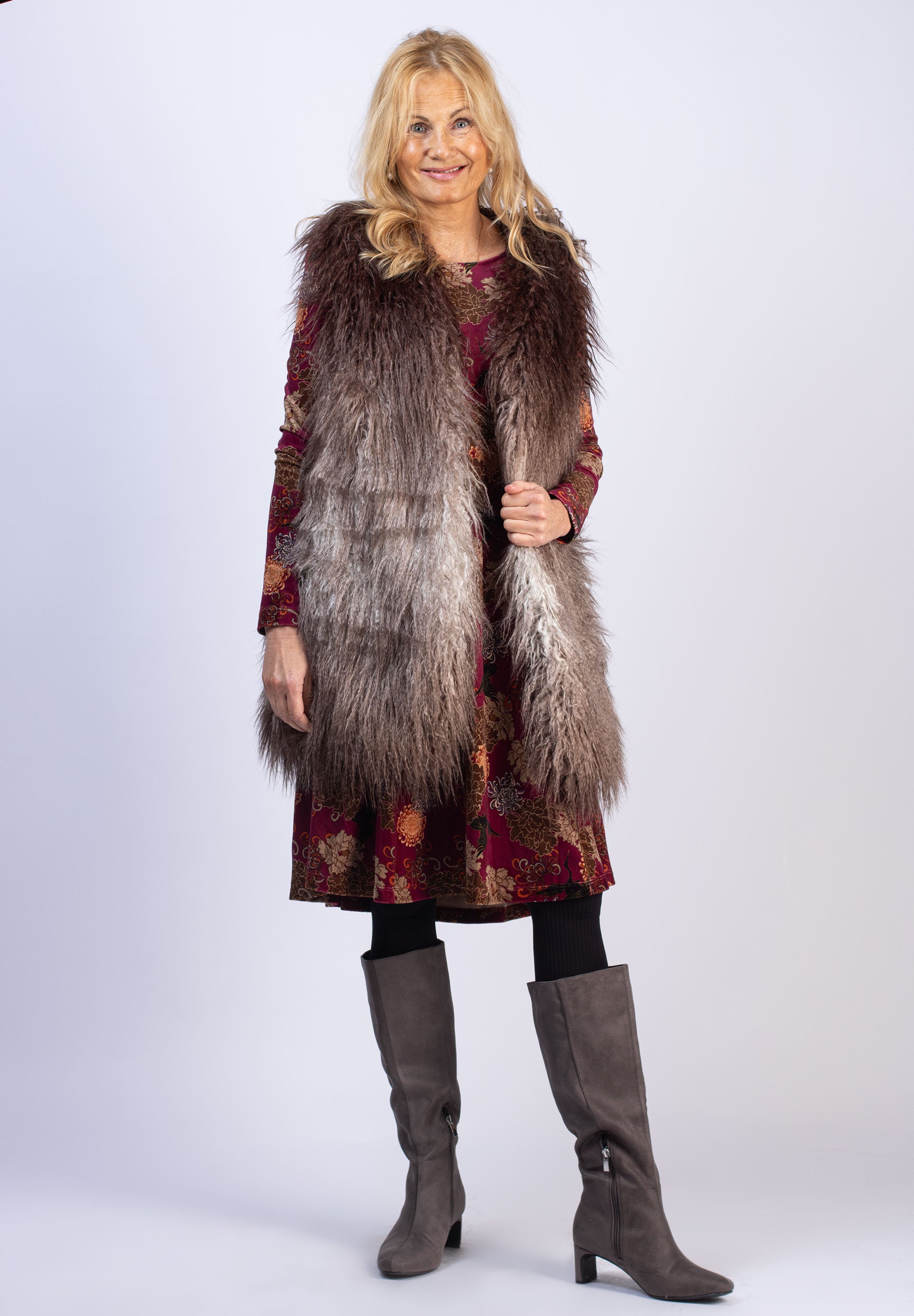 Lång pälsväst - Beige/Grey