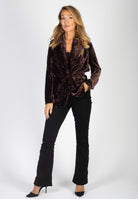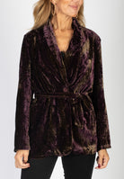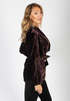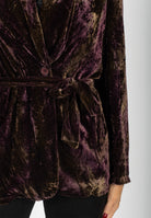 Lyft din stil med denna sofistikerade kavaj i mjuk och skimrande sammet. Den klassiska designen med kavajslag, långa ärmar och en enkel knapp framtill kombineras med ett skärp i midjan för en smickrande siluett.