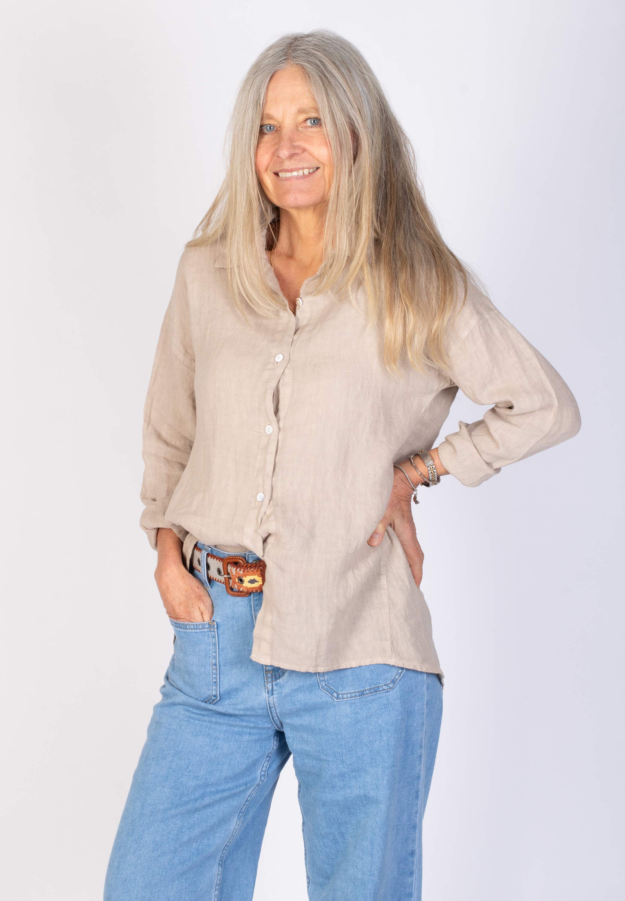 A classic shirt in 100% linen – cool and easy to style. It has a straight fit with a collar, buttons at the front and long sleeves that can be easily rolled up for a more casual look.