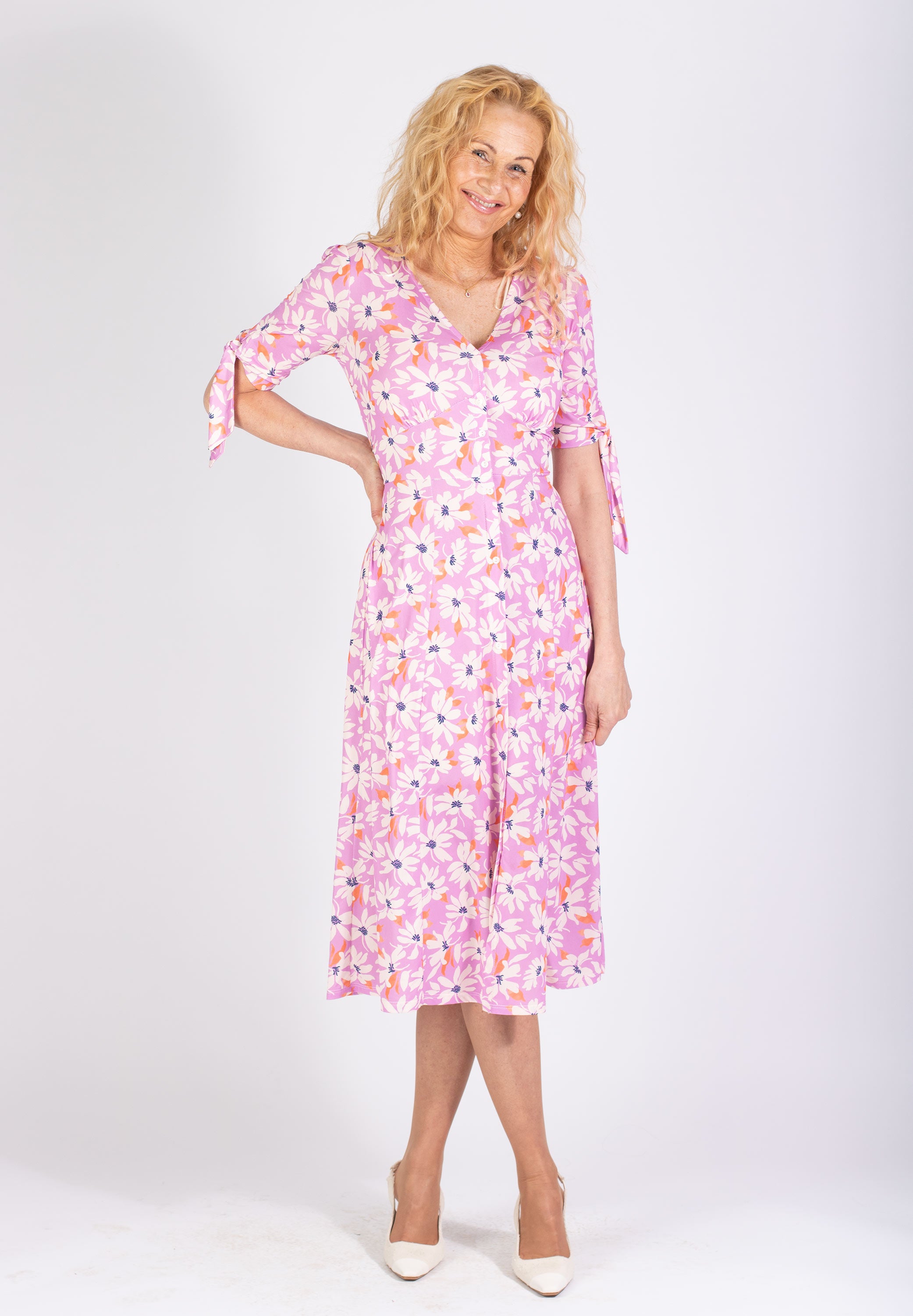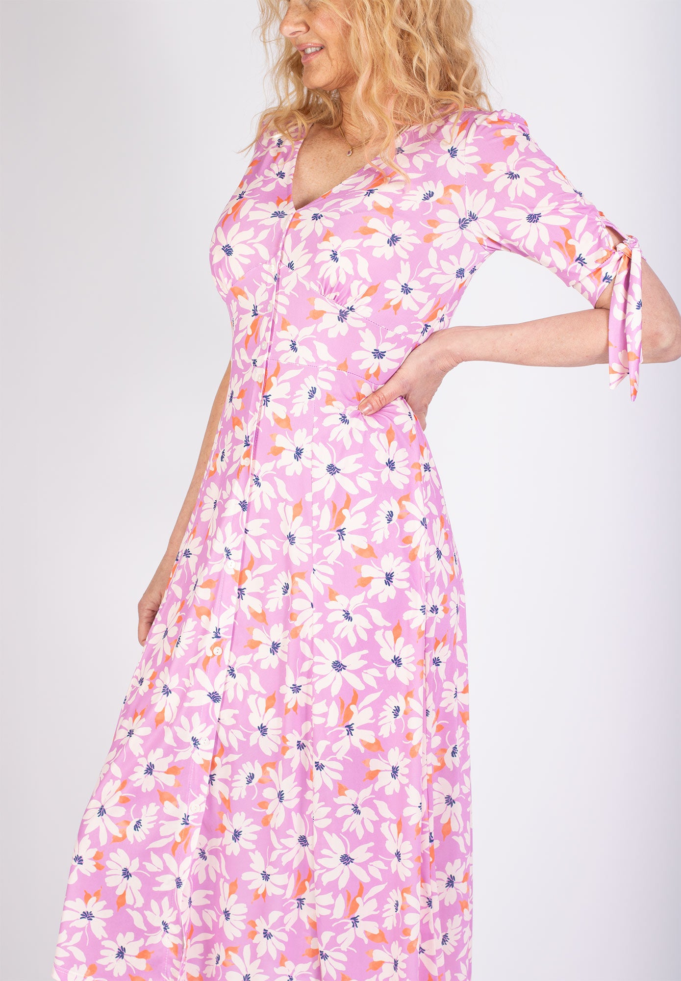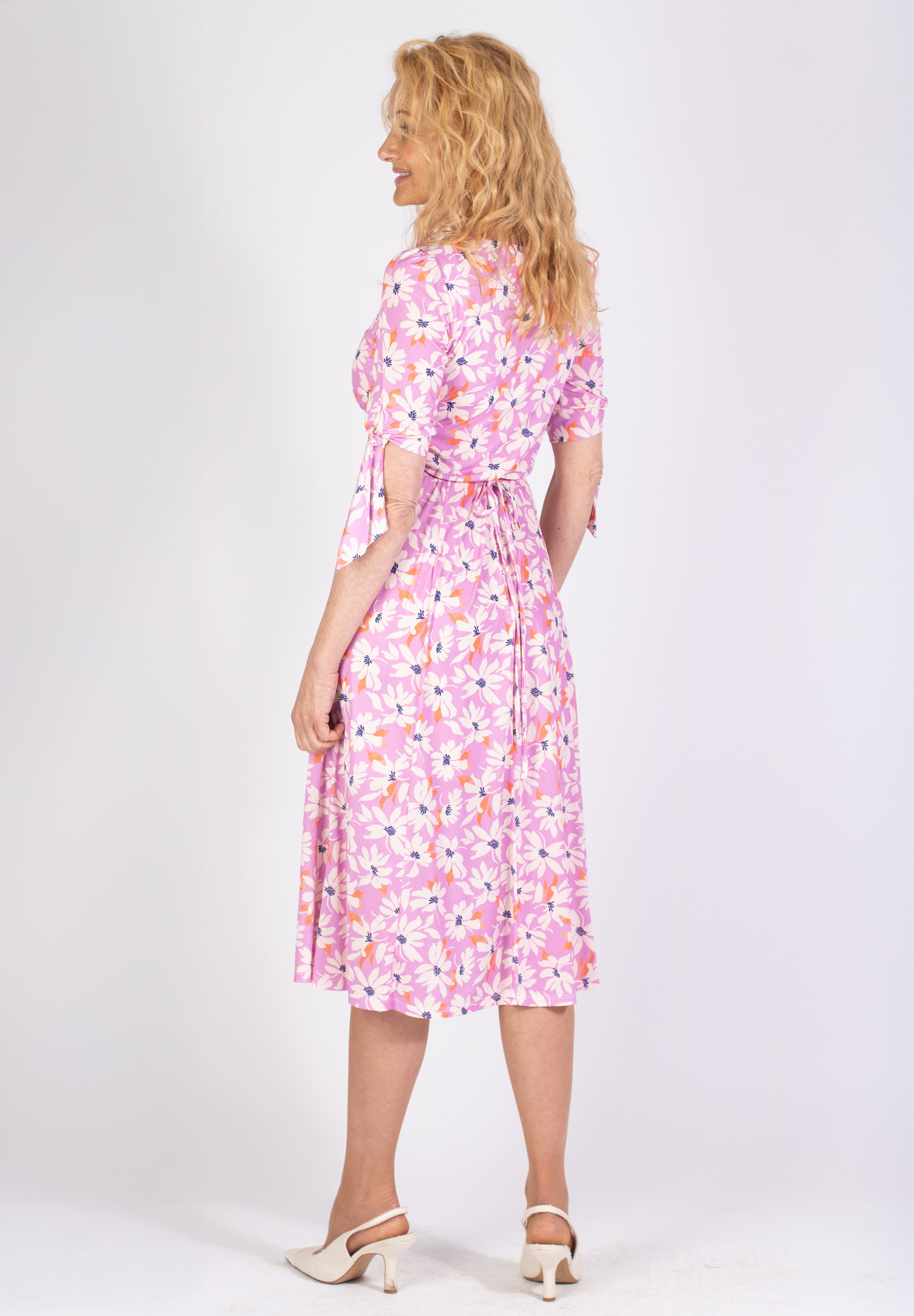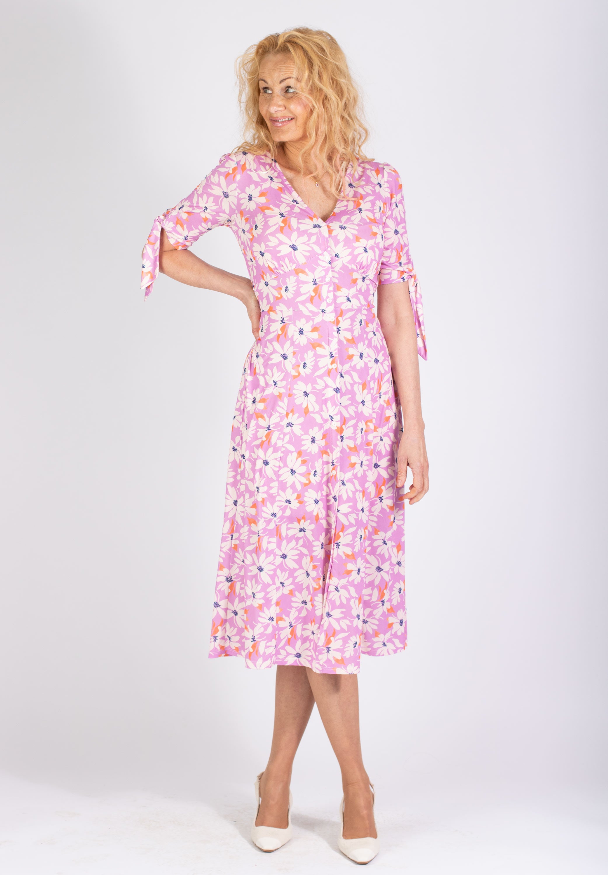 Rosa midi-klänning med blommigt mönster